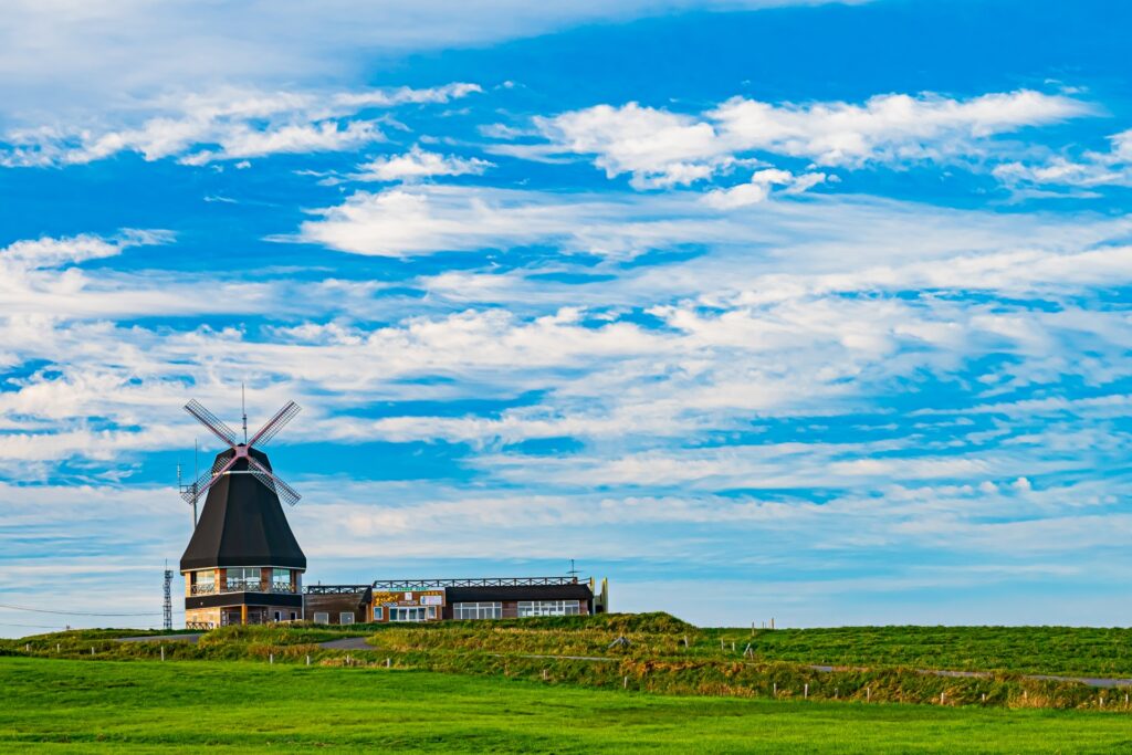 風車と草原しかない。まるで「RPGのマップか?」と錯覚するほどの景色が続く道北エリア。車を降りて見渡すと、自分の存在の小ささに笑えてきます。