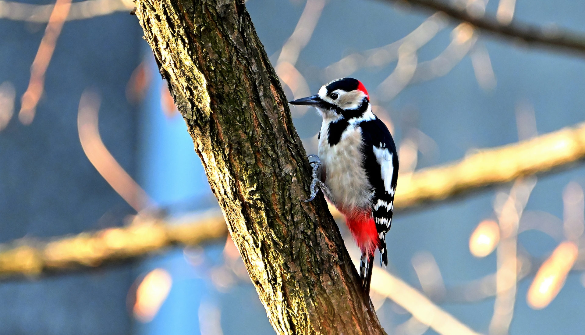 ドラミング中の木に触れると、驚いたキツツキが飛び出してくることがあります。観察は数メートル離れて行いましょう。